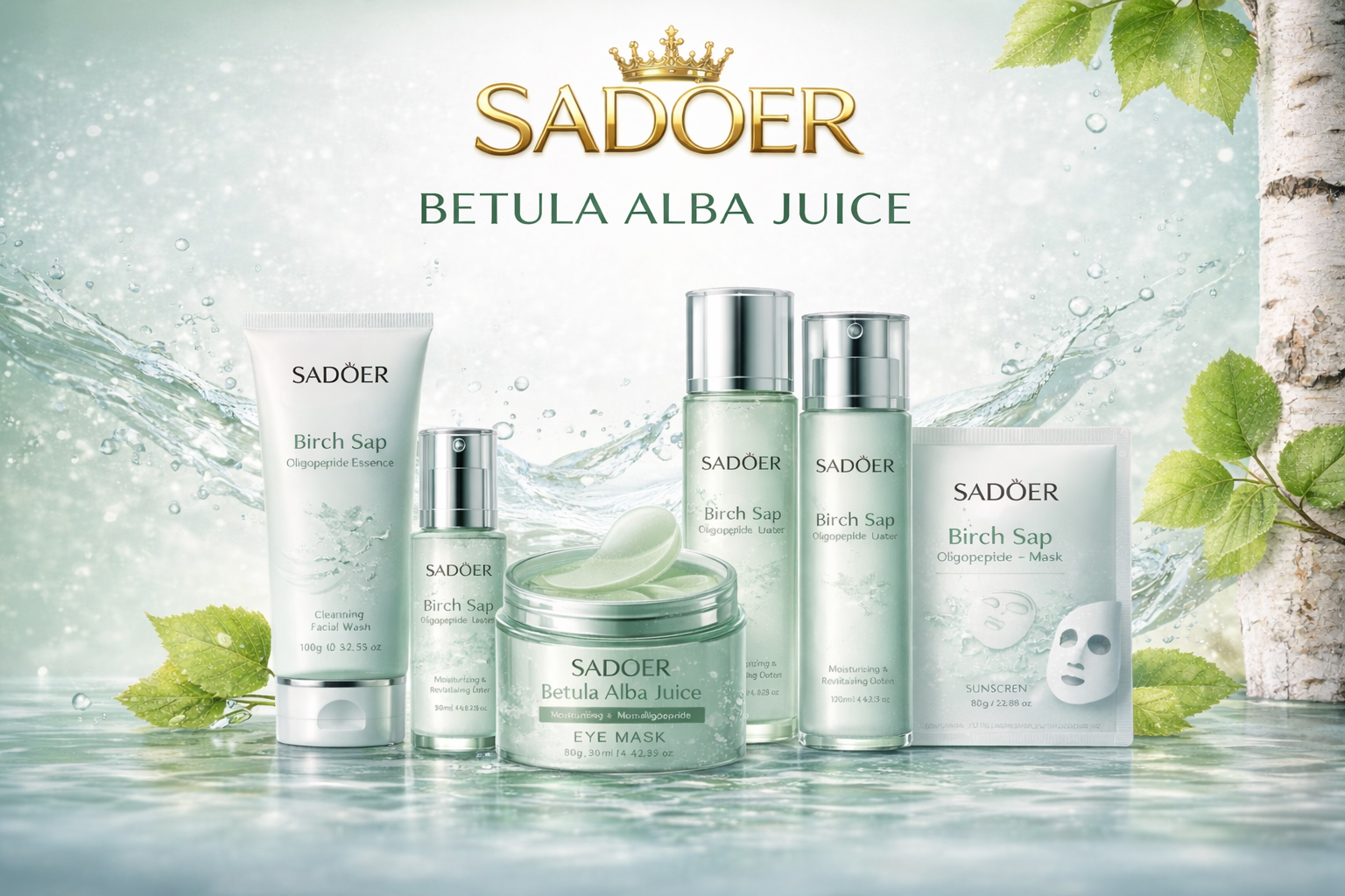 The Sadoer Betula Alba Juice collection focuses on providing a light and refreshing skincare experience.