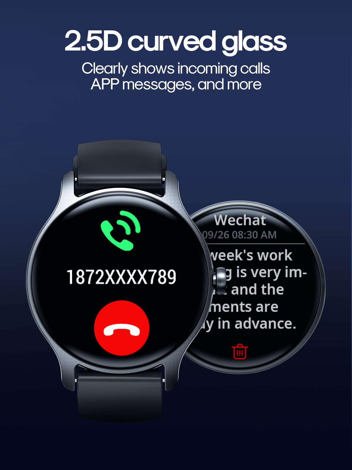 4. 1.28” HD IPS screen, 2.5D curved glass, clear and vivid