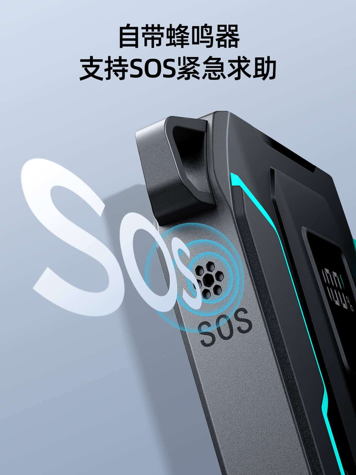 Flashlight & buzzer:Press and hold the button for 3-5s to turn on the strong light mode; short press it again to enter soft light mode; short press it for the 2nd time to enter SOS quick flash mode and the alarm sound will be activated; short press it for the 3rd time to turn off the flashlight. Press and hold the button for 3-5s under any above modes, the flashlight will turn off.