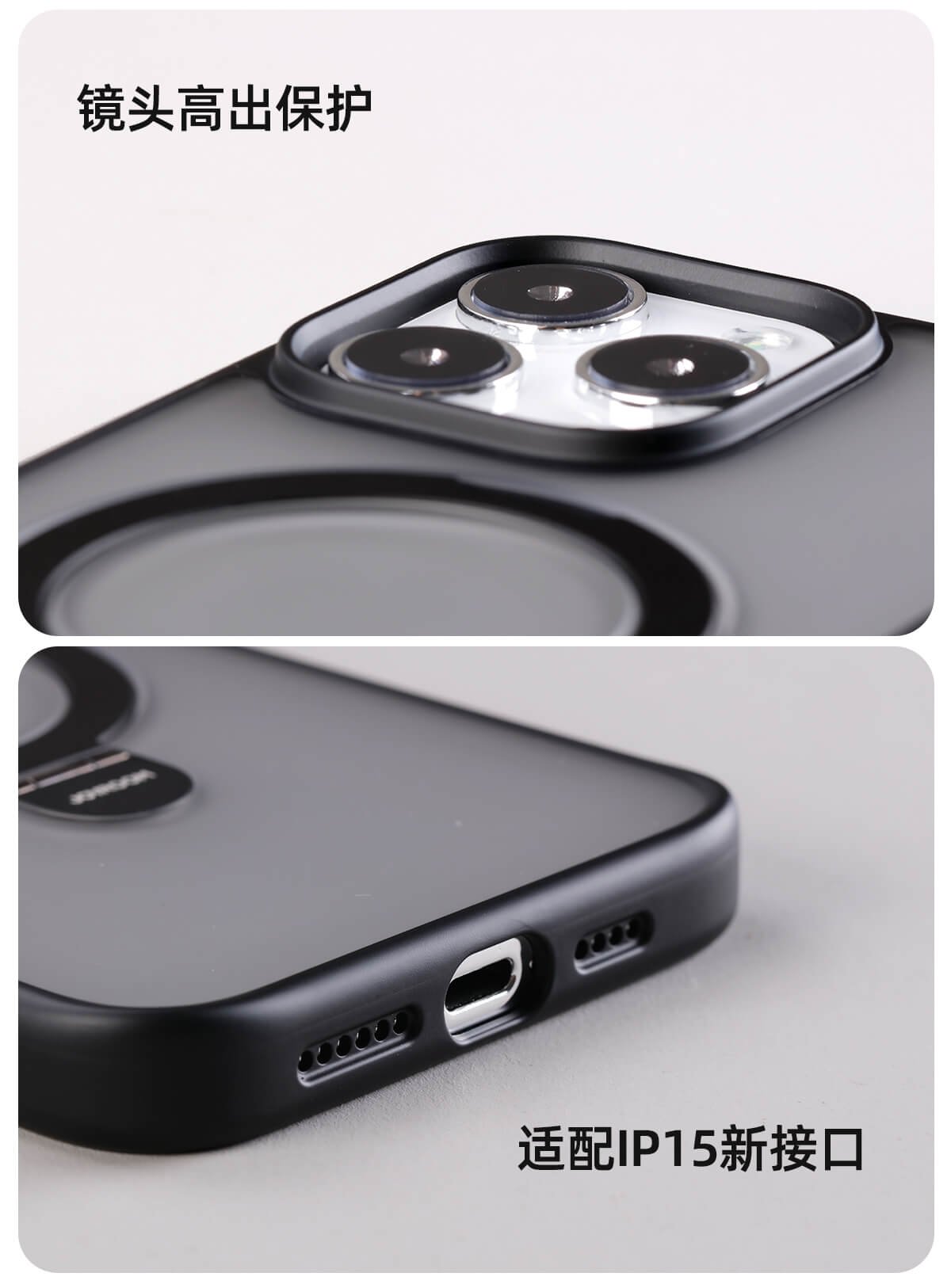 Magnetic Protective Phone Case with Holder for iP 15 6.1″-Transparent